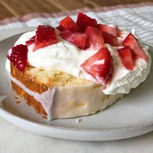 Strawberry Shortcake is a summer favorite in our home! There’s lots of different versions we love, but this one is our favorite! Bake my Lemon Coconut Bread and use a big fat slice for the base of your Strawberry Shortcake! The super rich lemon bread topped with fresh cream and strawberries makes this version the ultimate!
