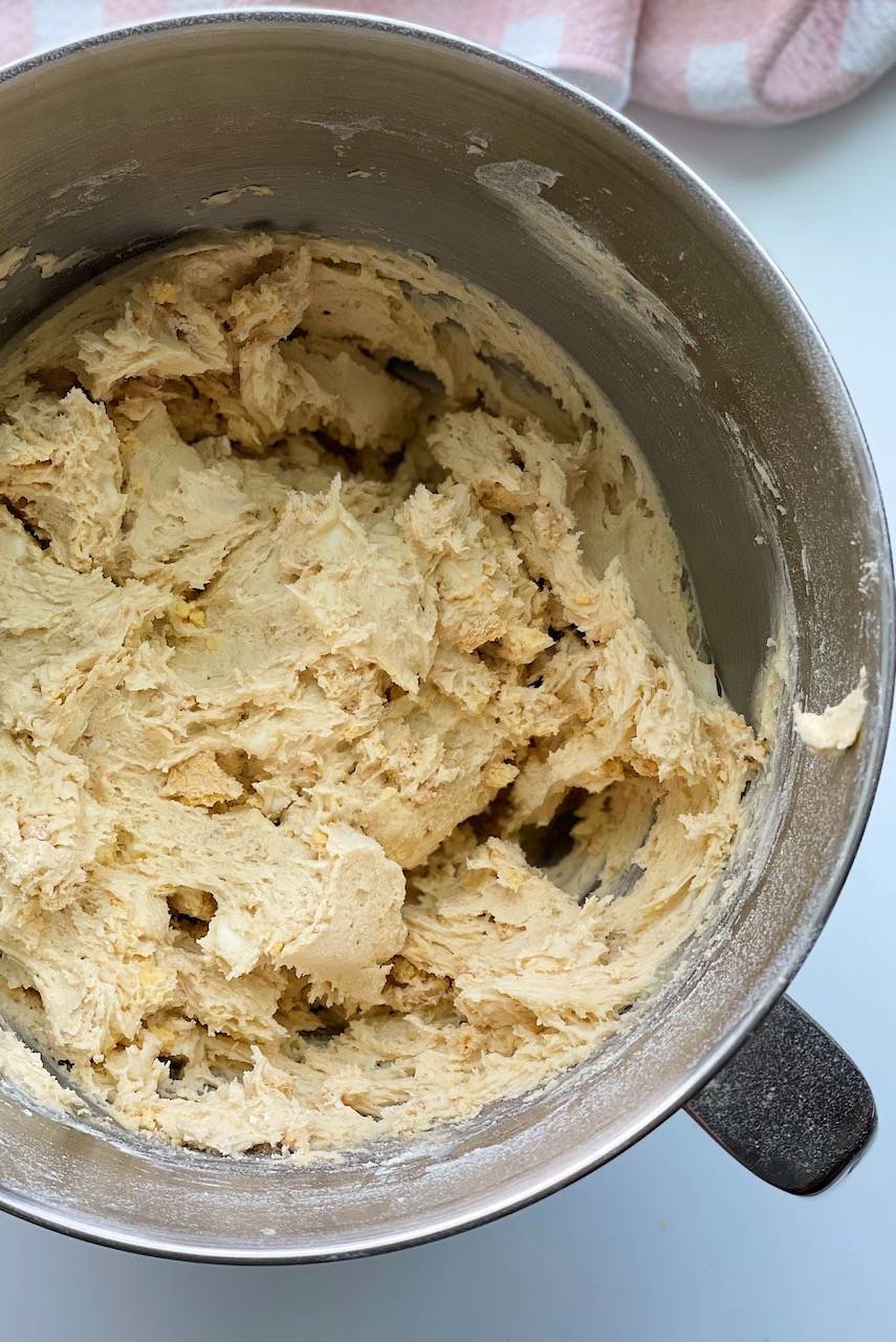 - To the butter mixture, add the egg and vanilla extract. Mix on medium speed until combined. Stop the mixer and scrape the sides of the bowl.
