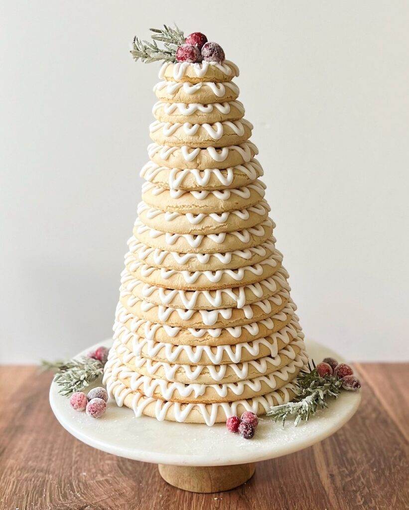 This traditional Norwegian dessert, meaning “wreath cake,” is made of 18 delicious almond cookie rings. A Kransekake is carefully stacked and arranged with royal icing. It stands out as the centerpiece for any celebration.