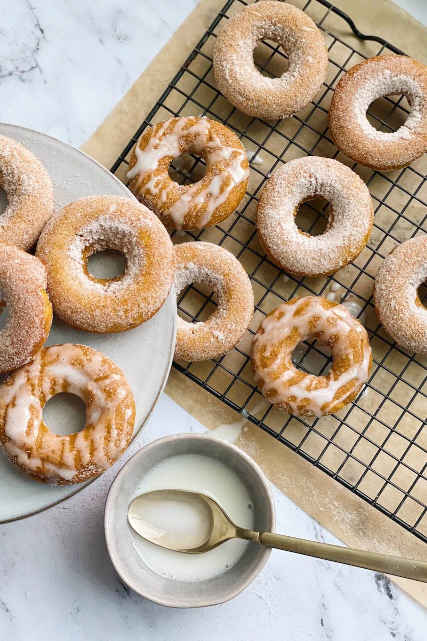 If you like switching things up a bit, try adding a vanilla glaze to some of the pumpkin spice doughnuts! It creates a more concentrated sweetness and creaminess when you bite into it! Find my most used vanilla glaze in my Apple Streusel Muffin Recipe!