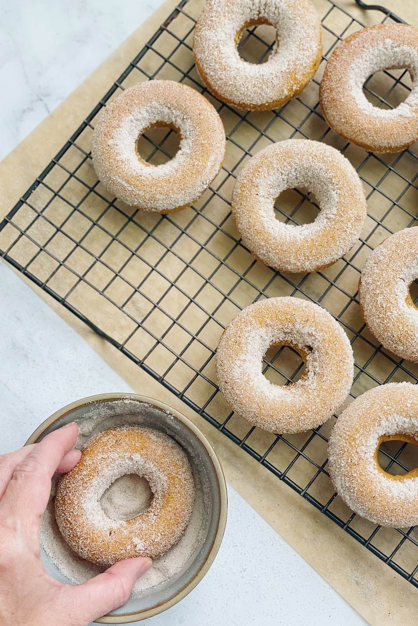 Making Baked Pumpkin Doughnuts with Cinnamon Sugar