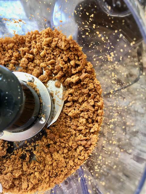 - Chop up the gingersnap cookies in a food processor or blender until they are a small crumb.