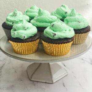 This frosting is so rich and decadent! It’s got just a hint of peppermint that is not too overwhelming. Throwing in some mini chocolate chips gives it just a bit of chocolate and crunch that reminds me of my favorite mint chocolate chip ice cream!