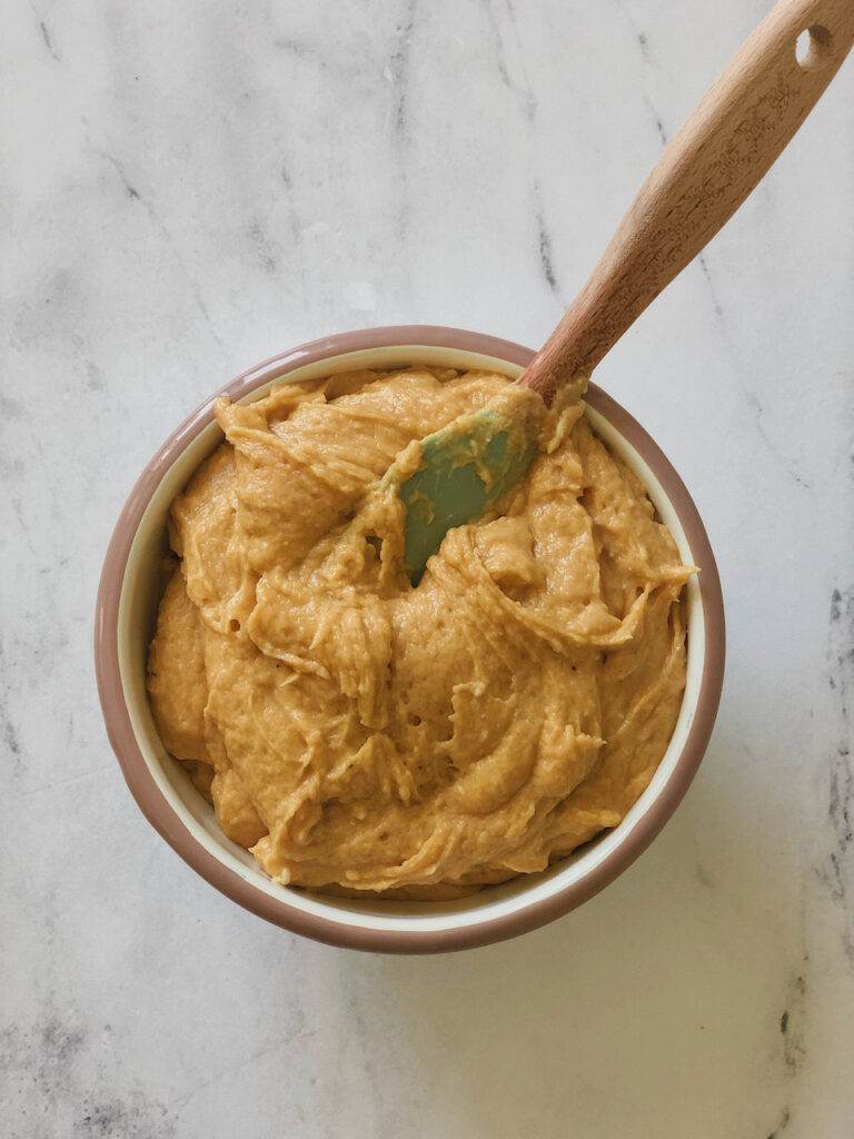 - Make the Peanut Butter Cheesecake batter: In the bowl of a stand mixer, using the paddle attachment, beat the cream cheese for one minute until smooth. Add the peanut butter and mix until fully incorporated and smooth. Be sure to break up any chunks of cream cheese that may be hiding in there. Add the sugar, egg, flour and vanilla. Mix until well combined.