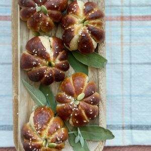 Be sure to let the rolls cool for 15 minutes before removing the twine and enjoying. Similar to a loaf of bread, the rolls are still baking internally right out of the oven. Giving them some time to rest and cool, will give you a perfectly baked pretzel roll – inside and out.