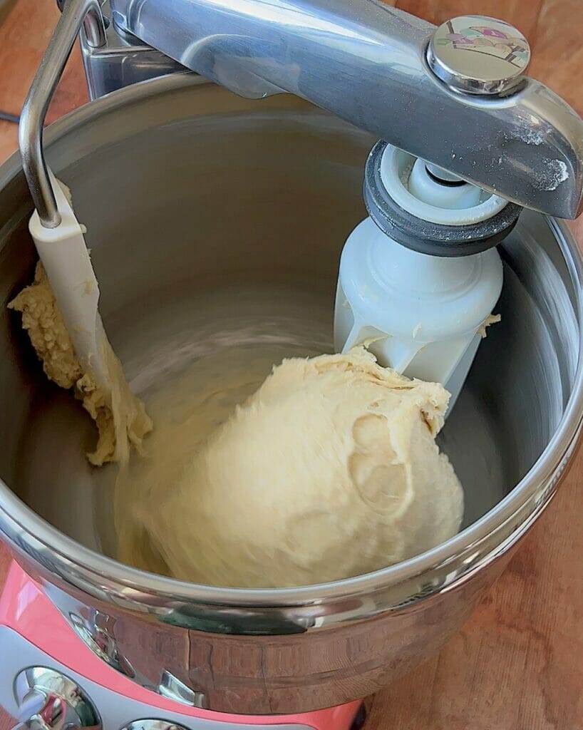 - Knead dough on low speed for 6-8 minutes, until smooth and cohesive.