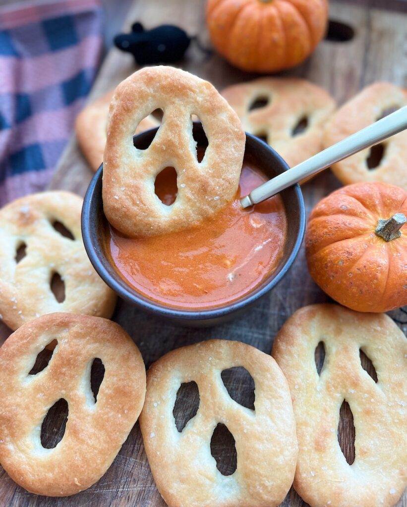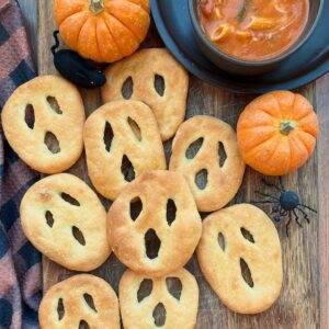 These easy-to-make, ghost-shaped fougasses are perfect for dipping in your favorite soups! Slightly crispy on the outside and soft on the inside, they’ll make a fun and delicious addition to your Halloween dinner!