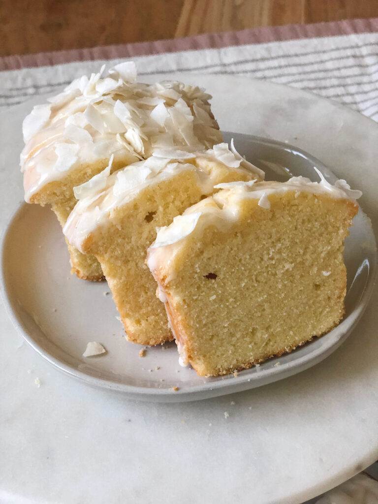 Bake the bread ahead of time. It needs to cool before you glaze and top it with coconut chips. It also needs to cool before slicing. If you’re serving it the same day you make it, bake the lemon bread at least two hours before serving.