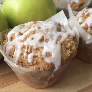 - While the muffins are cooling, prepare the glaze by whisking all the ingredients together. A thicker glaze will set up nicely. Drizzle over the muffins after they have completely cooled.