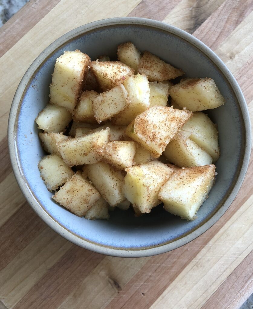 - Prepare the sliced apples. Mix together with the cinnamon and sugar. Set aside.