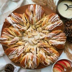This bread has everything going for it! It’s soft and fluffy, swirled with cinnamon and apples, topped with maple icing and looks so BEAUTIFUL! Star breads are a special treat to make any time you’re wanting that wow factor. Not only are they delicious, and beautiful, but they’re also really fun to make! You’re going to love everything about this picture-worthy bread!