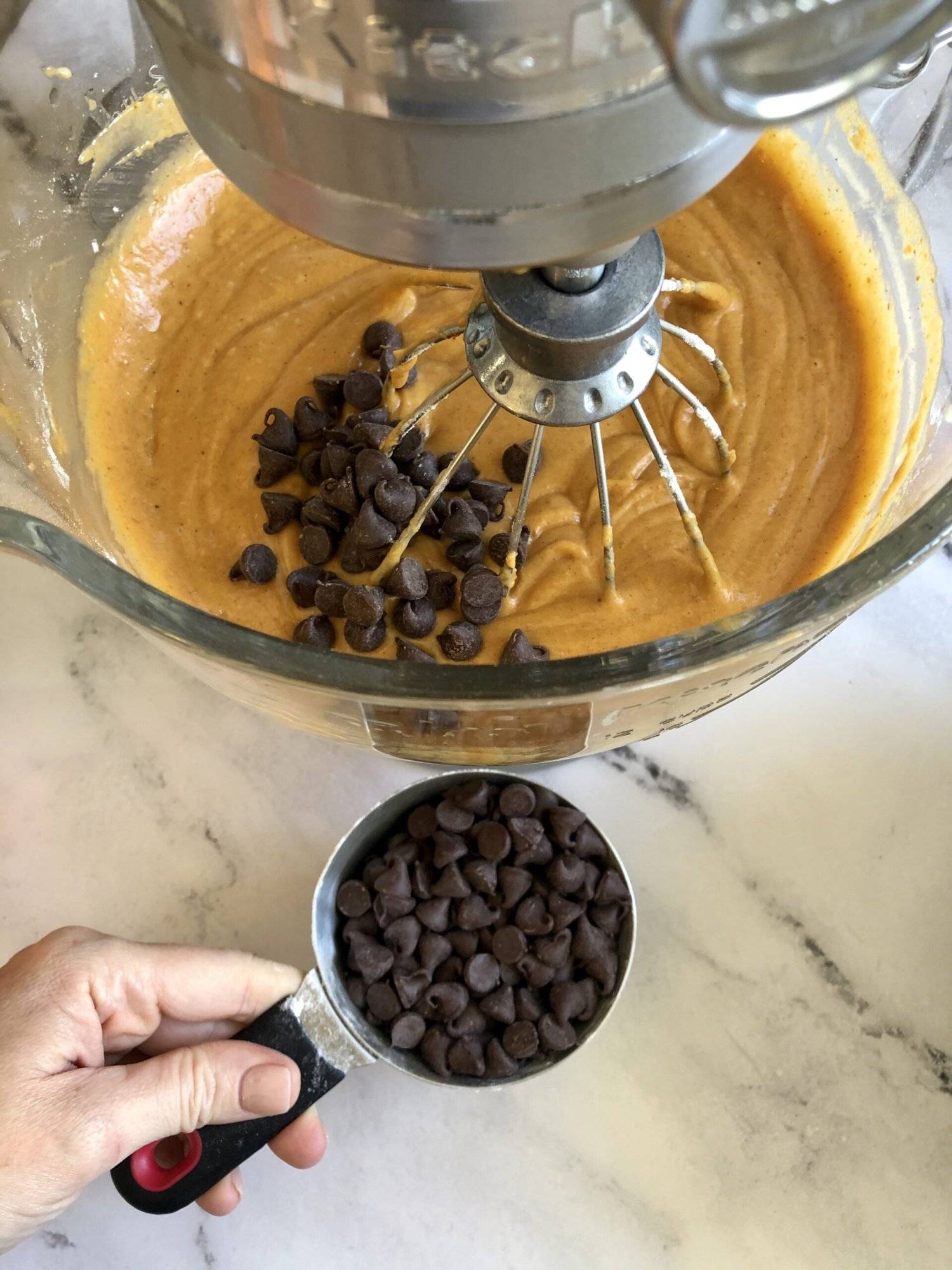 - Add the chocolate chips and mix until just combined.