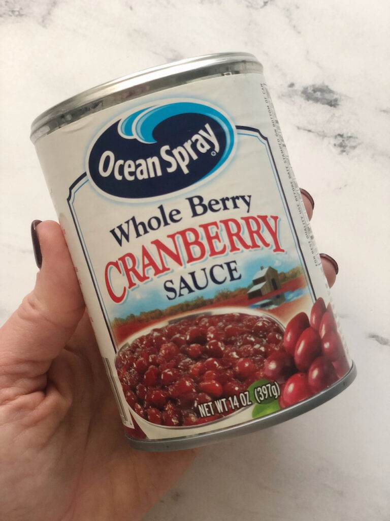 There are a few different types of cranberry sauce on the market shelf. It’s really easy to grab the wrong one. Be sure you use “Whole Berry Cranberry Sauce”. Yes, it’s the kind that slides out in one big tin can mass. It will give you Thanksgiving flashbacks for sure! Be sure to break it up so that you can easily spread it.
