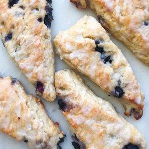 These blueberry scones with lemon glaze are flaky like a biscuit but have a sweet, tender crumb. These yummy scones are perfect for a special breakfast or brunch!