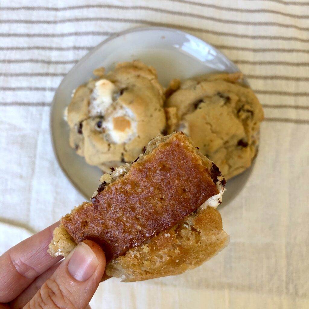 Smores are something my family loves to enjoy in the summertime, especially for the Fourth of July! Living in the Phoenix, Arizona area, July is definitely NOT the optimal time to be huddled around a campfire. Unless, we are lucky enough to be up north, relaxing in the cool pines, this cookie is the answer to our s’mores prayers! I developed this cookie recipe so that we could have that iconic and delicious treat, any time of the year!