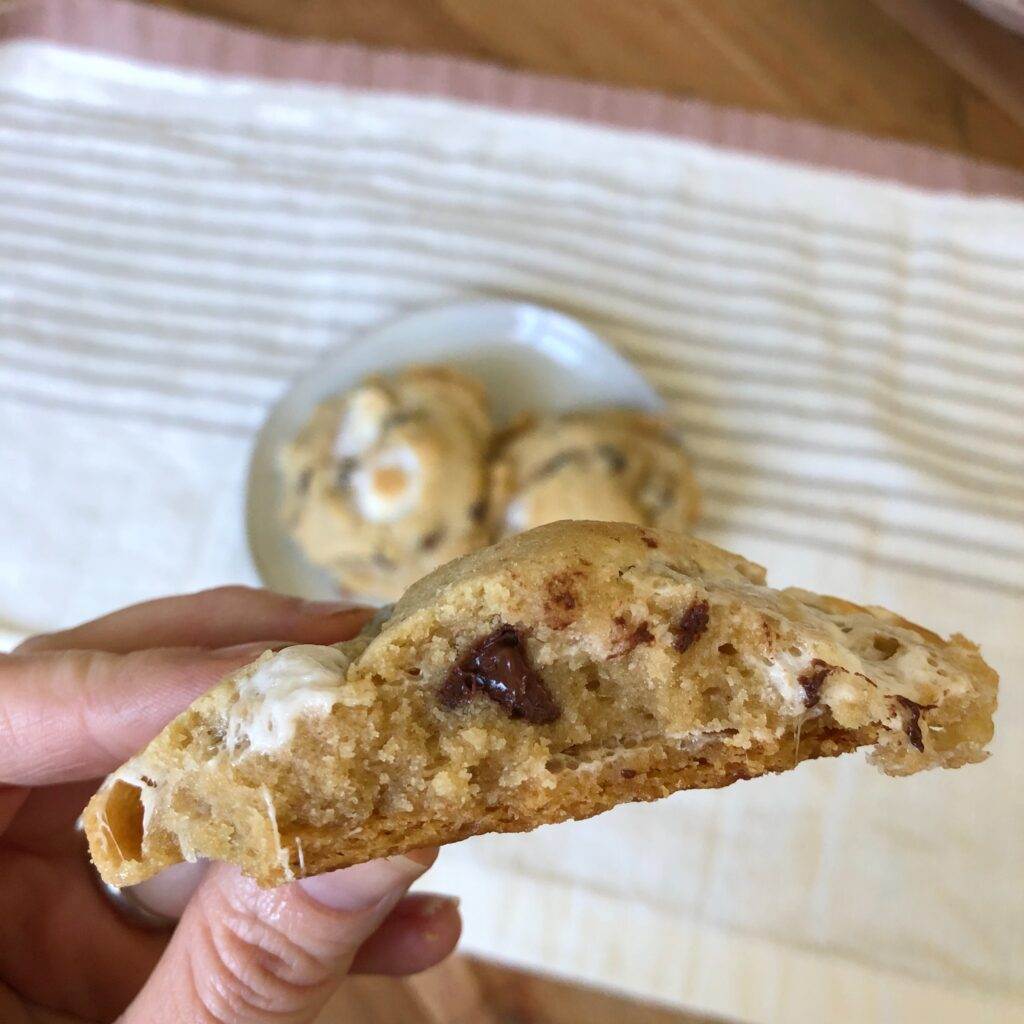 Let’s talk about the crust of this cookie. The butter dipped graham cracker as the base of this cookie is absolutely mind blowing! Since the cookie is so soft, the graham cracker really does its job, creating a good crust to keep this gooey treat together.