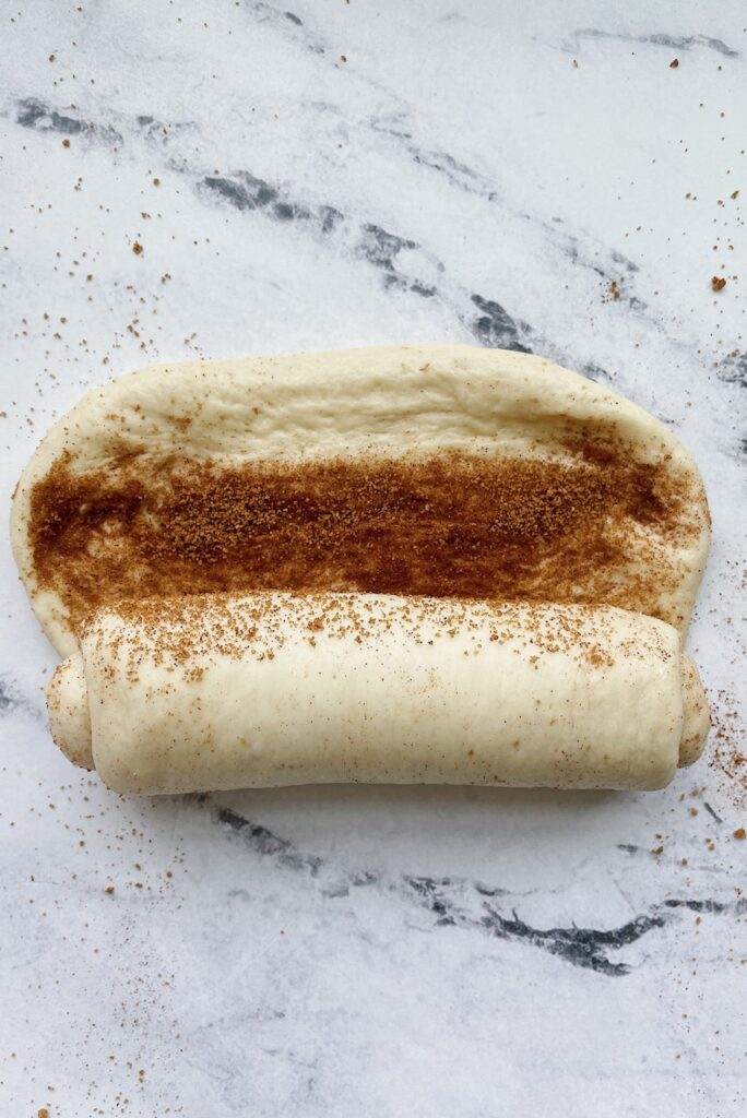 - Roll your dough tightly. This is super important not only for creating a generous amount of cinnamon swirl in your loaf, but also prevents the dough from coming unrolled and gapping as it rises.
